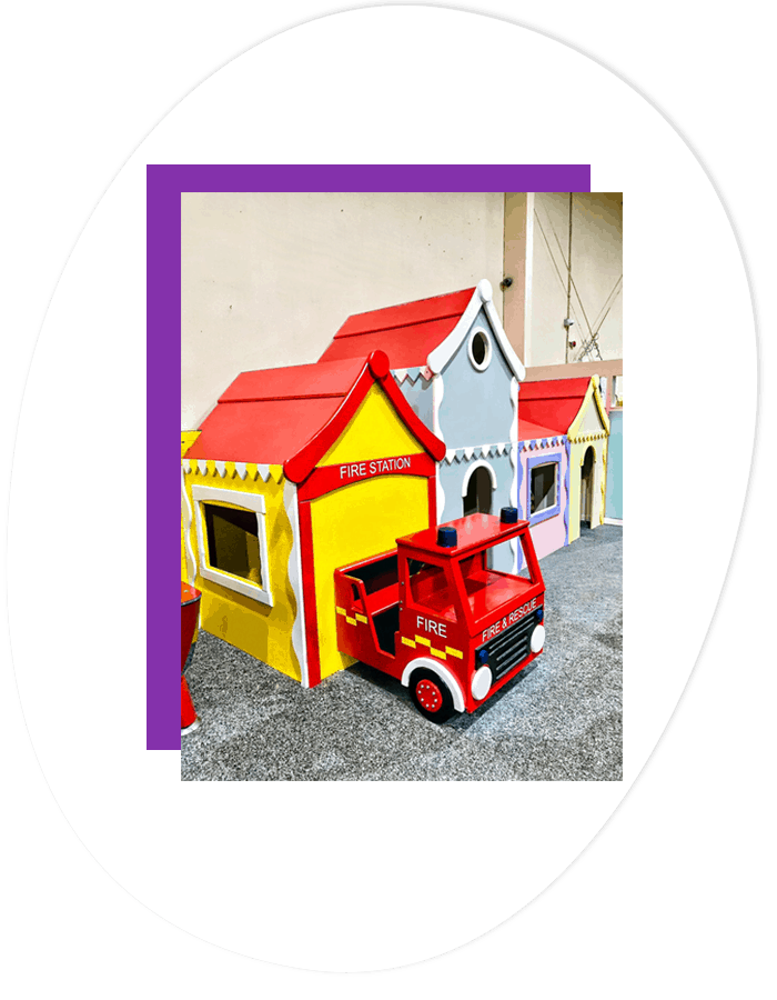 We have a row of three houses and a Fire Station, custom designed for little ones to engage in their all important small world and role-play activities.